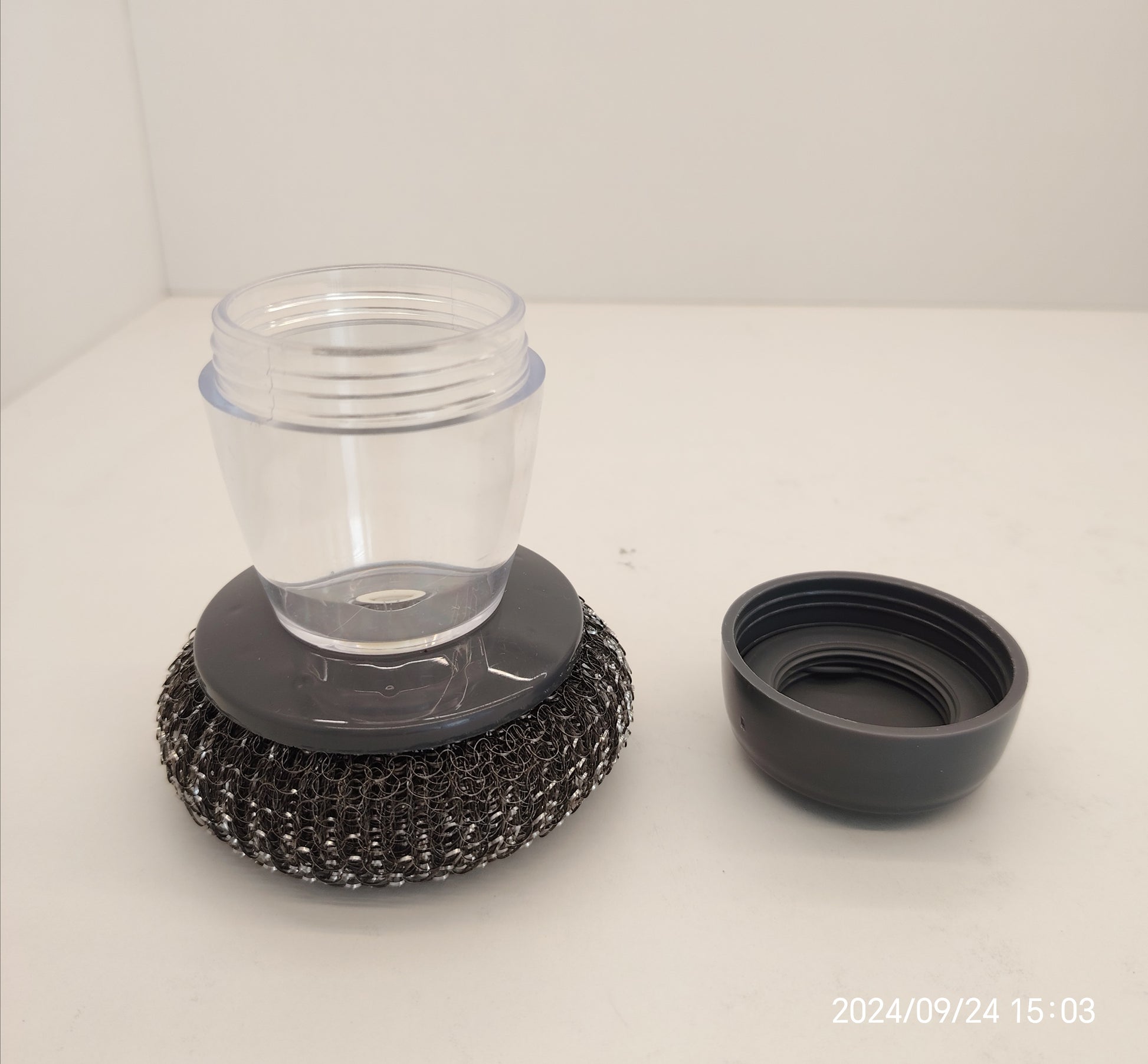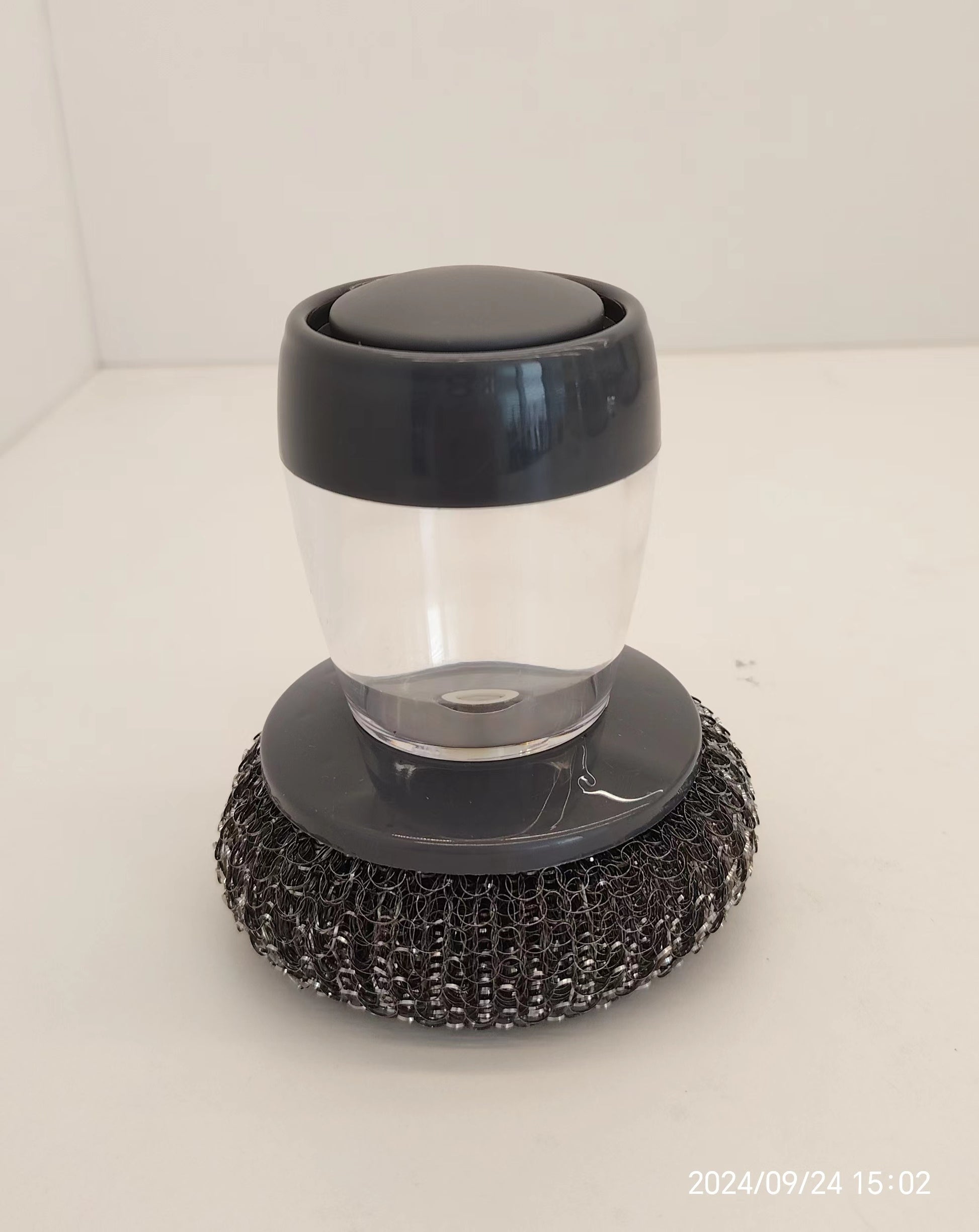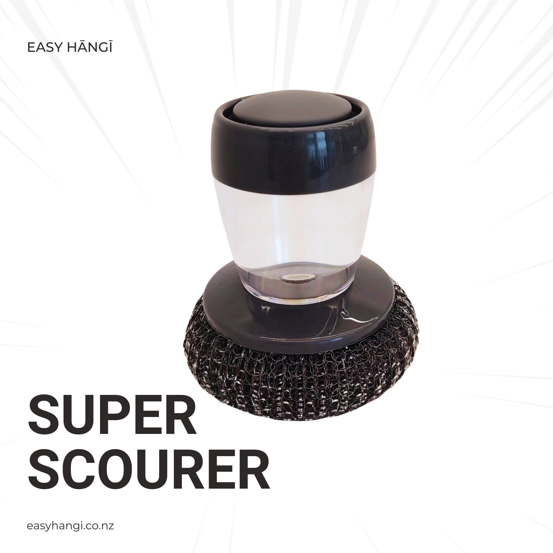 SUPER SCOURER MAKES CLEANING EASY!!! Unscrew the lid and fill with dishwashing liquid (push the top and liquid will flow).